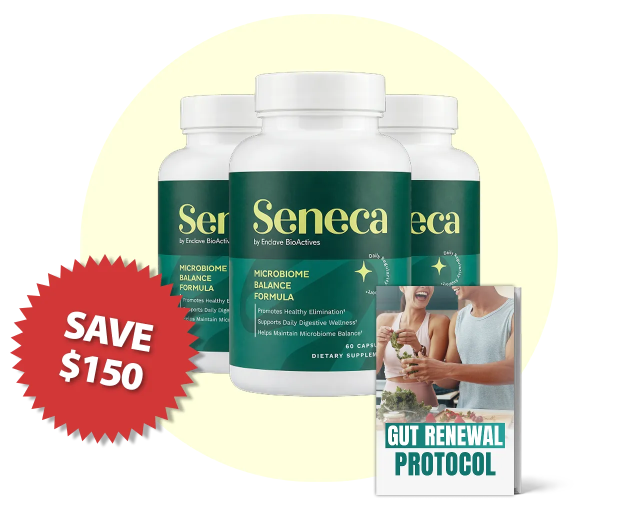 You are going to love what Seneca does for your gut microbiome. It’s a rare solution that delivers three powerful steps of support, helping rebalance your microbiome, support smooth digestion, and restore comfortable daily elimination.